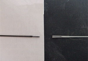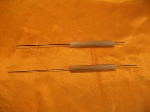 a.用直径1mm的钢丝捅针或直径1mm的碳纤竿尖子从高粱杆的中心捅过(见照片四)