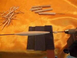 a.分别将漂脚及漂尾砂磨至所需要的直径(见照片六)