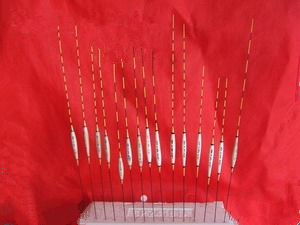 最近一段时间,我们这里的钓友推崇“枣核”漂及“牙签”漂。“枣核”漂,是那种漂身短,中间肚腹大而两头尖,形似枣核。漂脚长(10——12cm),漂尾更长(16——20cm)。“牙签”漂,是那种漂身稍长(10——12cm)而漂身直径小(3——4mm),漂脚也稍长(8——10cm),漂尾也长(14——17cm),形似牙签。