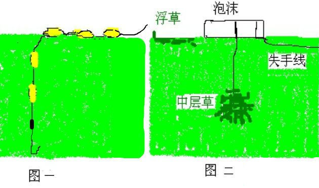 当钓浮时,将活动漂球的压线钢丝按浮草泳层深度压紧即可。因草轻,空气阻碍大,遇风更难抛时,可加坠重(可用较粗保险丝在大粗针上挠制做的螺旋坠,用时按螺旋旋进去即可),便好抛草饵了。也可用下面的方法: