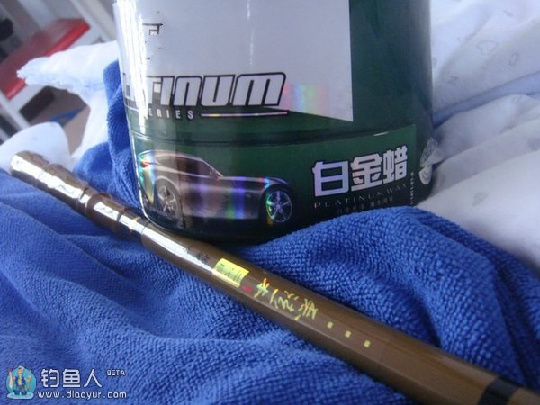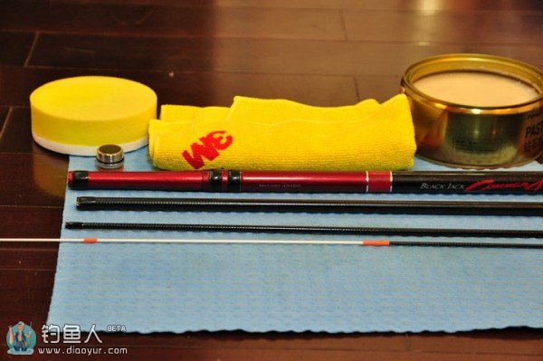 9、将鱼杆每节并列摆放;将表面蜡均匀喷在外壁,注意不要喷多!再用绒毛巾抛亮;