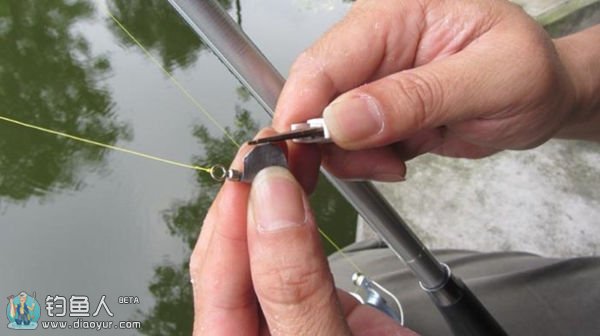 4、为了避免在扬竿过程中铅皮或加进去的铅皮块掉落,以及为了减小铅皮的水阻在调好浮漂后务必加固,收紧铅皮。