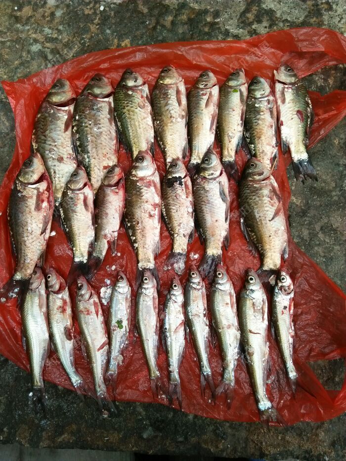 一如既往麻将鲫放生,有点遗憾没钓到鲤鱼。今天和儿子一起打理干净,最后留下这么点鱼获,吃一顿还是够的!