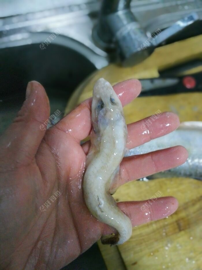 回家打理,竟然还是买一送一,剖开肚肠,里面还有一条还未消化的推沙鱼。我到底是赚了还是亏啦?