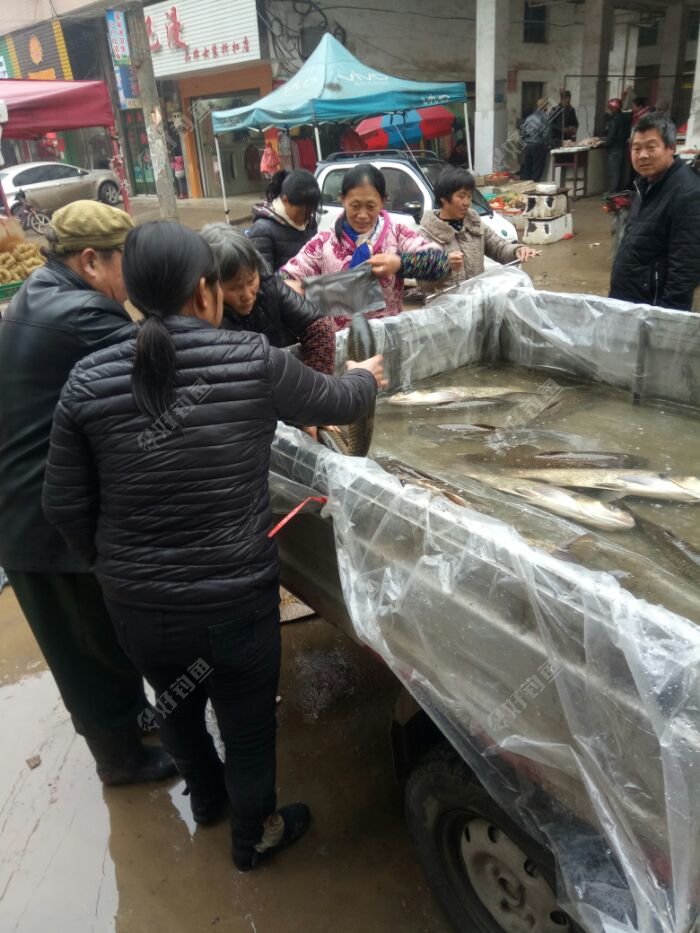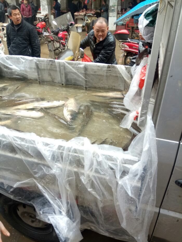 雄鱼个头不小,最小的都有七斤多,一个小时左右,已卖两百多斤,抓鱼,装鱼,称鱼,收钱,四人忙的没顾吃早餐。