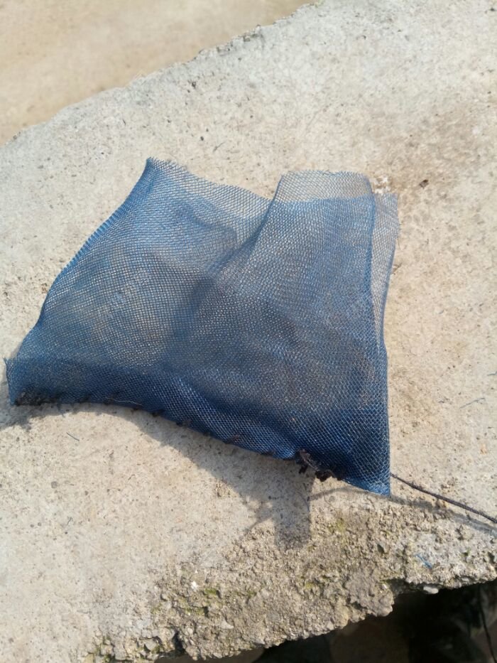 再揉成小团,装进沙布袋(自制的沙布袋,用沙窗网,剪成片装,然后缝合)扎好口子