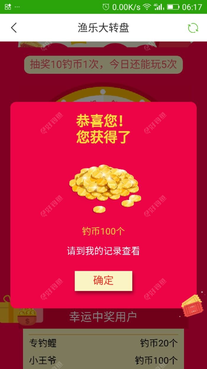 幸运大转盘就像人生,人生其实也是一种赌博,即然是赌必然有输有赢,有胜也有败,可是如果你连赌的勇气都没有,凡是听天由命,岂不是连一点机会都没有?(个人意见,不喜勿喷)。 最后在此感谢平台,给于你我相遇的机会,让我们彼此学习了自己未能领会钓鱼技巧,让我们共同分享了彼此渔获的快乐,让我们免费获得了更多的渔具…… 祝:所有钓友转盘次次出888 钓鱼次次大鲫大鲤,大爆护 平台工作人员身心健康 平台商城越办越好