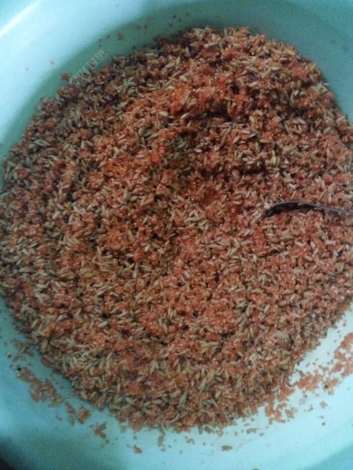 共收获这么多成品,密封储藏以待明年再战! 本款酒米看上去色香味齐全,有大颗粒也有粉状,符合诱鱼条件了,只是初次这样制作,不知效果如何? 南香北腥,南甜北酸,南方的可用不一定北方也行,我在此基础上在冬季会另加一包红虫粉或者蚕蛹粉,以对待冬季天冷!