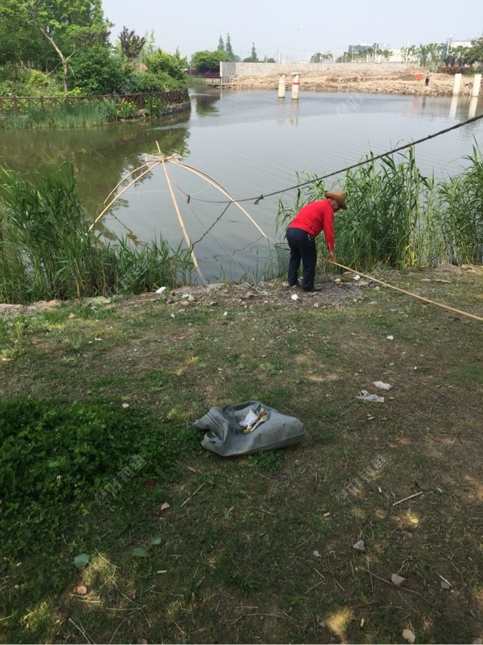 早上黑白交接,看漂模糊,坐了一夜,起来走走,钓位不远处,有一老者扛着一大推东西过来,一阵娴熟的操作,就有了下面照片中的景象,应该不少人都见过吧,我不知道专业名字叫啥,也许评论里会出现科普。我试着拉了两下,还可以,就是手受不了,需要戴手套才行。