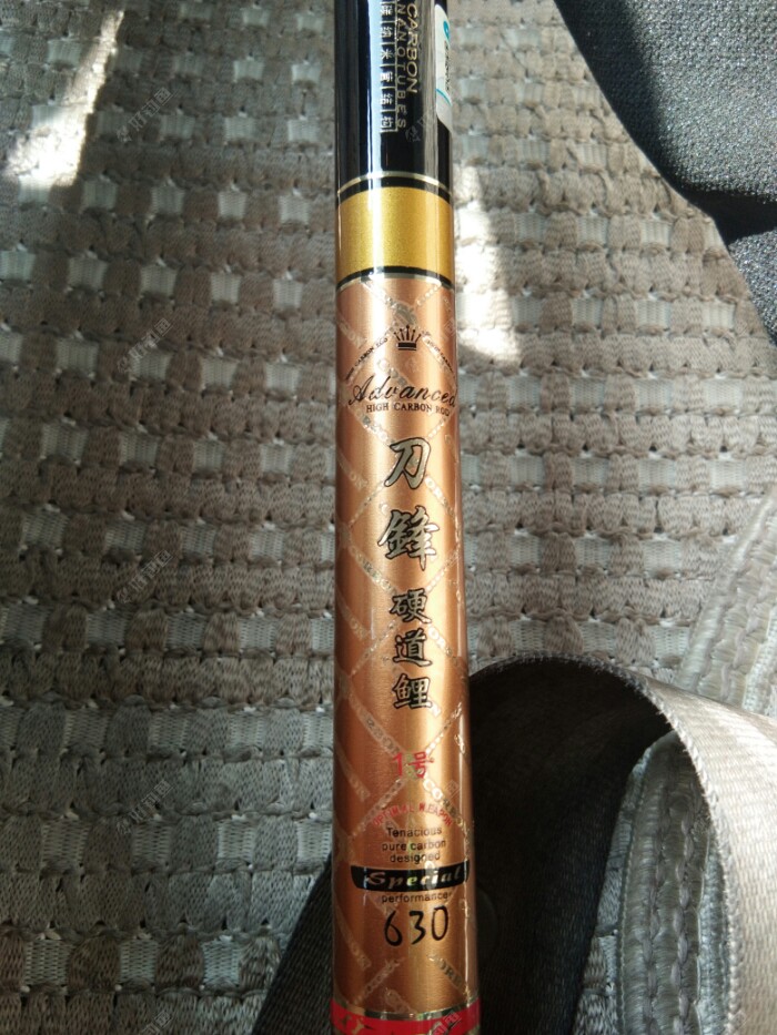 心肝试水,正宗的小磨香油,打开后堵,擦净每一节后段链接,把香油均匀涂抹一层,润滑防抱死处的杆节。 这叫送人鱼竿手有余香。开竿必备。小心安装抽出,用点力,在空矿处狂甩暴力试验。37调,6米3的杆子176克,比我的光威赤刃6米3的320克竿子轻接近一半啊。ruan――软,有点失望,我感觉就是纯37调,不偏28的。金灿灿的涂装,外观漂亮有啥用?我要的是上鱼不要爆杆,找快石头测钓重。