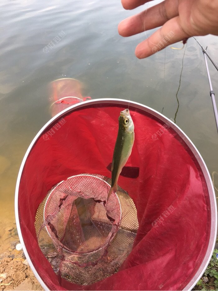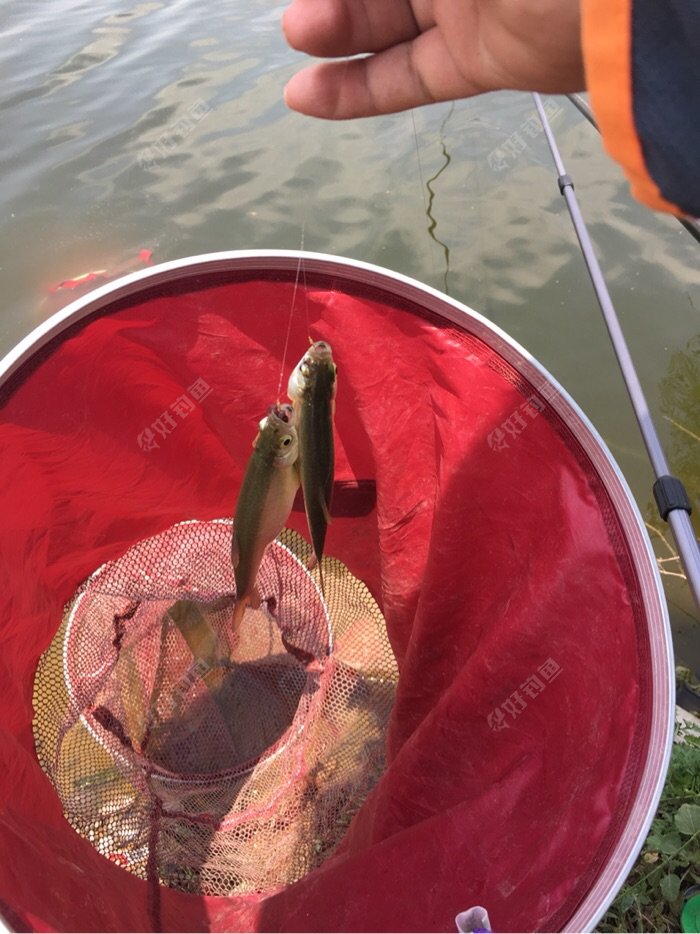 连续抽了几竿后,漂子有了动静,点点点,再点就提竿,白条一尾。