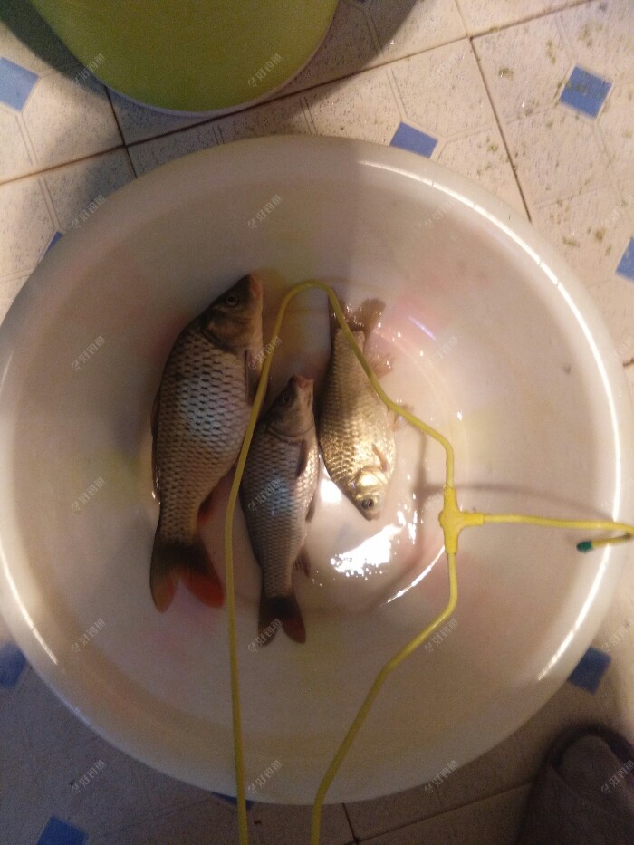 钓友们好收杆了回来给你过眼瘾,简单描述下今天的鱼情,主钓鲫鱼酒米打窝,钓一上午没有什么口,因为饵料过腥小鱼闹窝没有什么收获,到了下午我就改变方法超诱加小药打窝掉鲤鱼,饵料不变只是窝料变了,因为我用的饵料是多用型的,主要看窝里来什么鱼,不如所料一个下顿黑漂抬杆刺鱼(中鱼),手感不错四斤左右的鲤鱼,可惜好感不长,刚好把溜鱼的姿势摆好不妙鱼线弹回来了,不用说你们懂的,切线,切线,把我气死了好不容易来条大鱼,哎,没心情了,从绑线组挂饵抛竿,我心想刚才那个跑了肯定会有第二条,于是我就等啊,不知道等了好久又一个下顿黑漂,我心里窃喜这次应该稳当了吧,然而并不乐观,不料线又弹回来了,鱼钩变形了脱钩了,这次给我打击太大了,顿时没有心情钓鱼了,抽了只老龙凤香烟缓解一下心情,唉。。不说了看图,鲤鱼爸妈跑了,把孩子拉出来垫背,哈哈 谢谢观看:小龙至上。