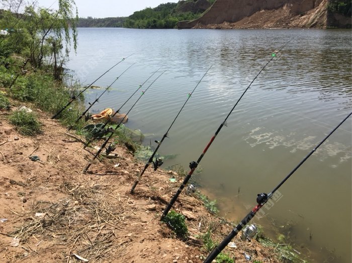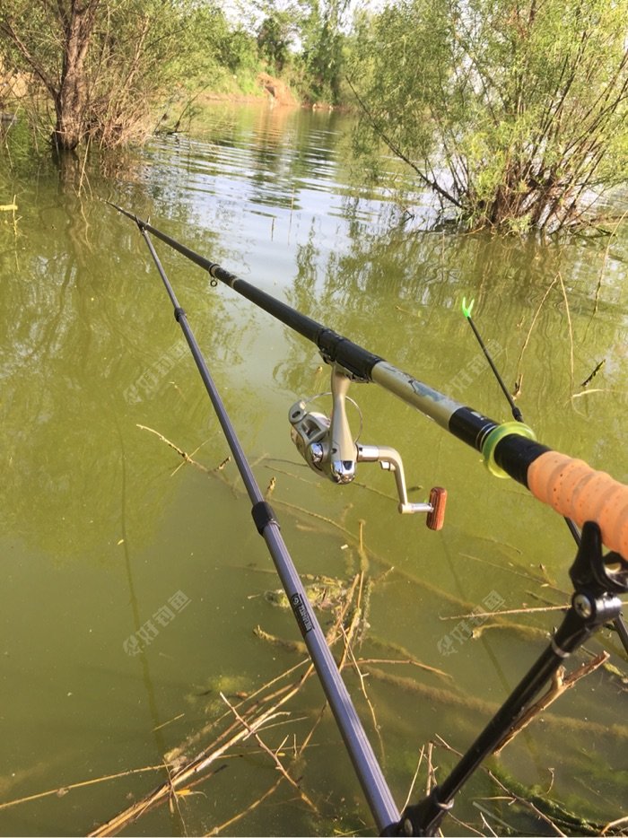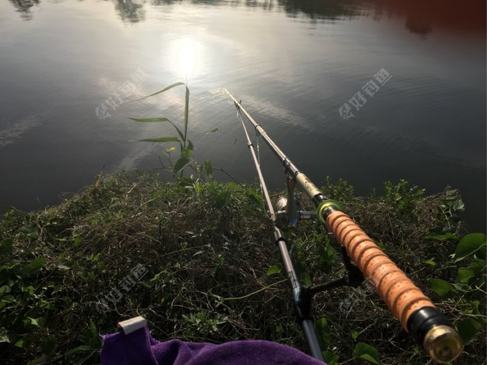 这是我的钓点了,看到竿子了吗?矶钓当台钓,竿子是自己DIY的,就是冲着大物的。