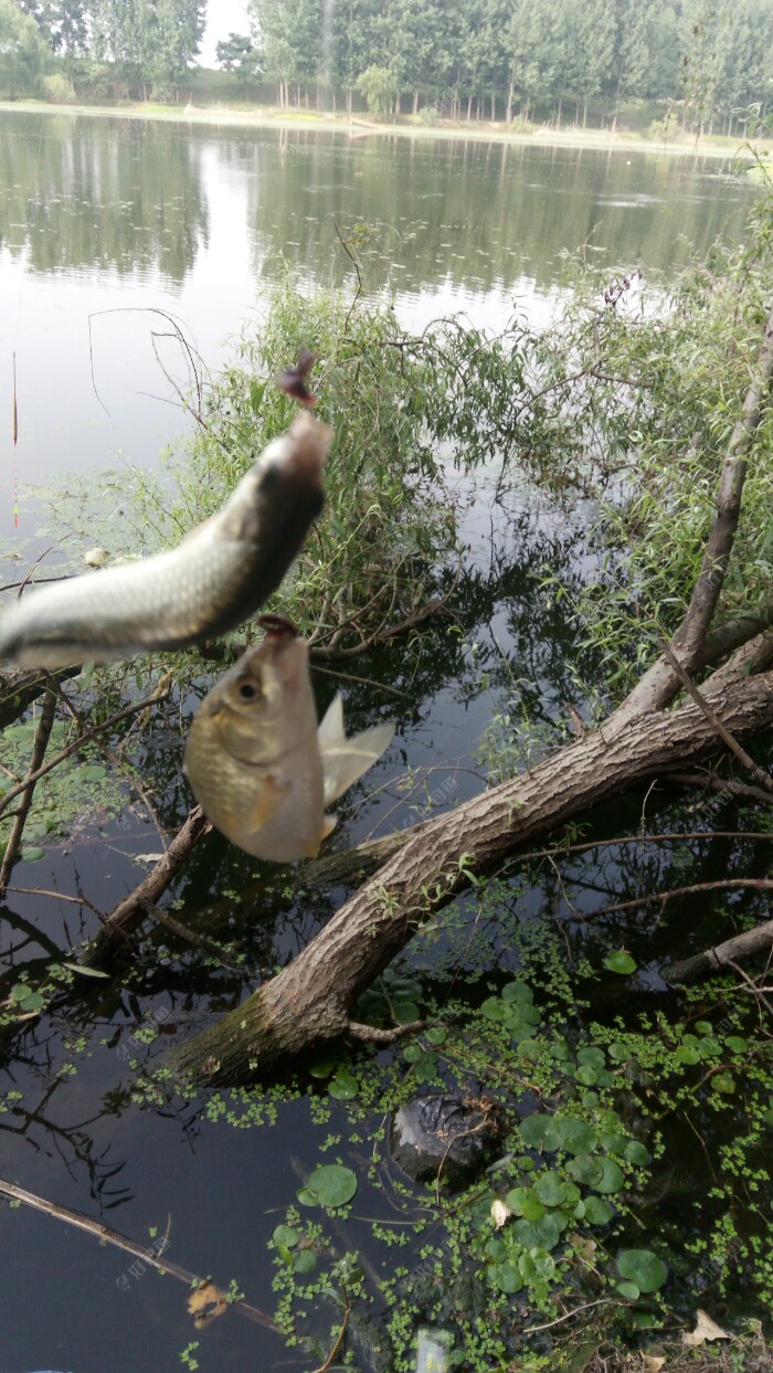 来到钓点,已经看到了几位钓友作钓。树荫之下,掩映这几把钓伞,几人身影。虽然树林繁密,但热还是感受很深。问了两位钓友,都摇头,一个说钓了一个多小时了,还撒了几把颗粒,浮标也没见动一下。另一个说,有两口,都是小鱼。他们一致认为不中。不中怎么整?来就来了,难道高兴而来,扫兴而归?既来之则安之,打窝,开饵,抽干,调漂,一切就绪,等鱼上钩。