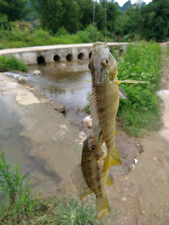 三点半起床开车赶往地点中渡黄兴屯装门,路程得有七十几公里,也是醉了,六点开始装大门,丢下三位师傅,我又往回赶,还要拉一车房门,十点终于拉完门,准备车上睡一觉,屋前刚好有条小河,定眼一看,有几指罗非在游,还有马口,奶的,没睡了,翻车上的工具,由于要坐三个师傅,饵料包都放门面了,只有竿包在座包下,只翻出一包鲢鳙料,再翻,翻出一小包奶香鲫饵料,哈哈,可以了,找个小碗,合饵单开,三米六手竿,钓也没有,只翻出一对三号袖勾,下竿甩起,密密有口,当然是小鱼崽,一小时上了十几只小罗非和十几条小马口,上一只放一只,钓好耍的,困了也吃中午了,吃完车子睡觉!
