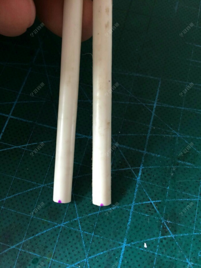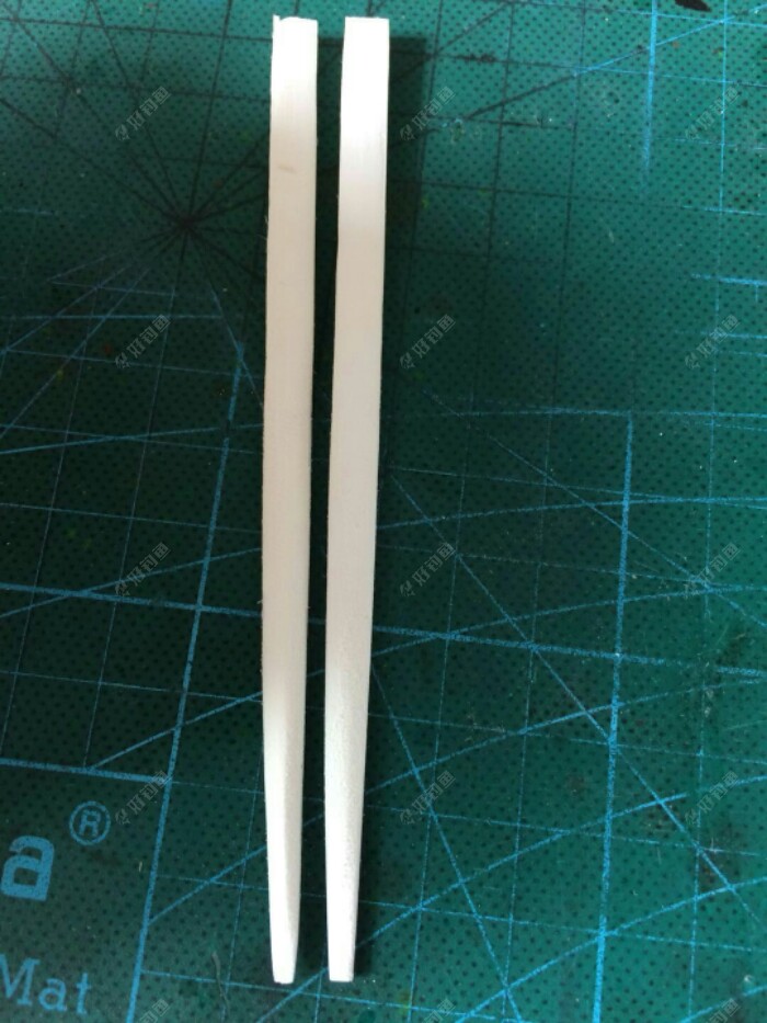 选取同样直径的羽毛,截取同样的长度,把凹凸面皮撕掉,