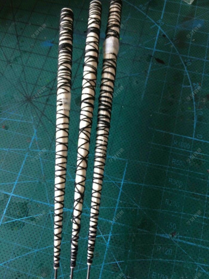 切好后看看锥度是不是一样的,不到位,磨,合起来看看接缝咋样,,做羽毛一定细心,耐心,肩一样做法。