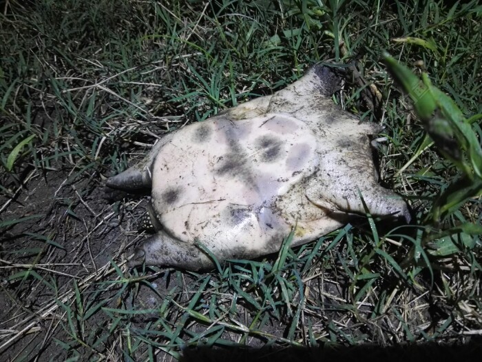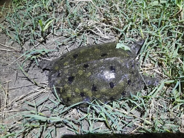 上周三临时意动,带了二十付手线去塘边,转了一圈,只在芦苇空档下了十付钩。浅滩没去,不是不想去,准备不充分,半个塘子转完,天已经擦黑了。 九点收钩,本不抱太大希望。不料第三付就中了个七八两的,正宗梅花鳖,青背黑花,十分喜人。最后一付又中个青背,一斤多的母鳖,缠在底草上,扯了两把,才拉上来。