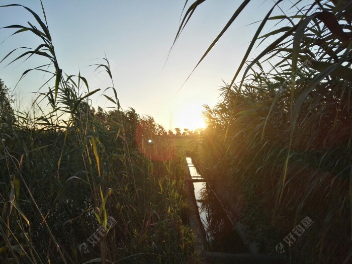 隔日早起,天光微亮,红日在长路尽头升起,将房屋、树木和云彩都染上了一层金光。摩托在乡道间穿行,耳边杨树叶子娑娑作响,风吹过来阵阵凉意,我不禁问自己,有多久没见过凌晨五点的太阳了?