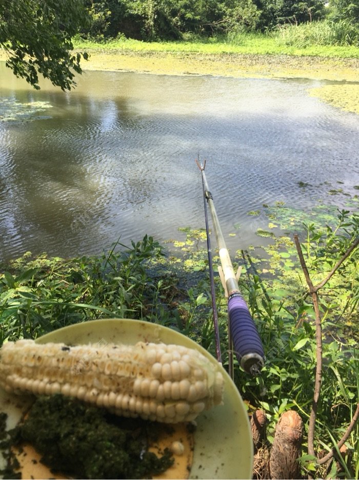 今天休息要钓鱼的昨晚就用干玉米和菜籽饼混点土在钓点打了个重窝、准备干草鱼了。早上起了个早7点到和边在打点窝料准备开干、昨天打的窝效果还可以的早上鱼星不断的、先看看环境