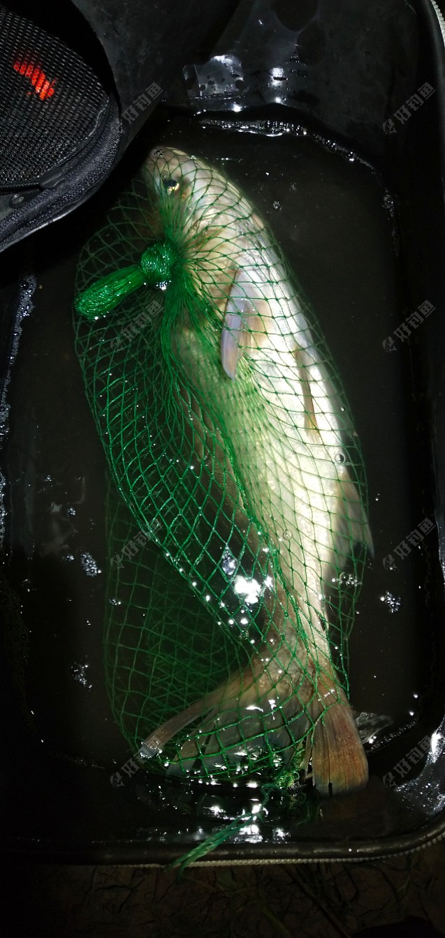 用网装好准备放河里,想想不行万一跑了不就白费力气了吗,我又打了几桶水装鱼桶里,心里那个高兴啊 别提了?于是我更有精神了跟中了几百万似的好吧~_~此时已是23:30分 我正想着回家怎样做好吃,突然漂又一个下顿 慢慢往下快没了我才提杆,好家伙 又是一尾这条比第一条劲更大 溜得没一会儿 砰! 啊 当时 心又凉了 又给我切了这次是主线?