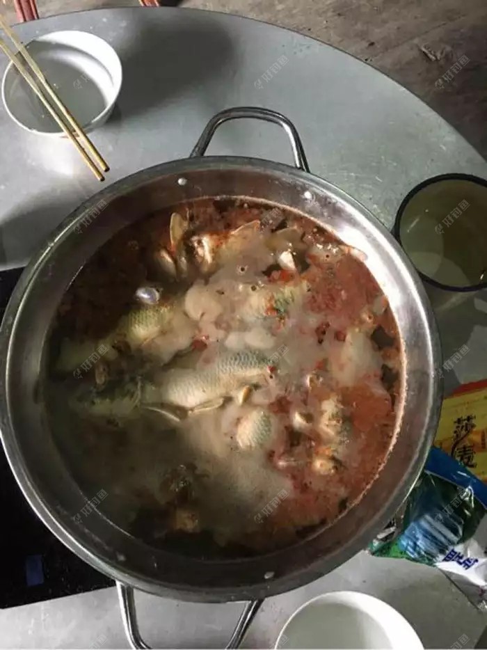 从田里钓来的稻花鱼,到家后将鱼简单处理,鱼杀了,但是不破肚子,只去掉内脏,放入清水中加上少许的葱段和姜片煮,等到鱼汤开始泛白再加些香菜和盐。再煮不多时打开锅盖,整个厨房清香缭绕,用锅铲撮点鱼汤吹凉斗嘴喝下,顿时鲜味包裹全身。