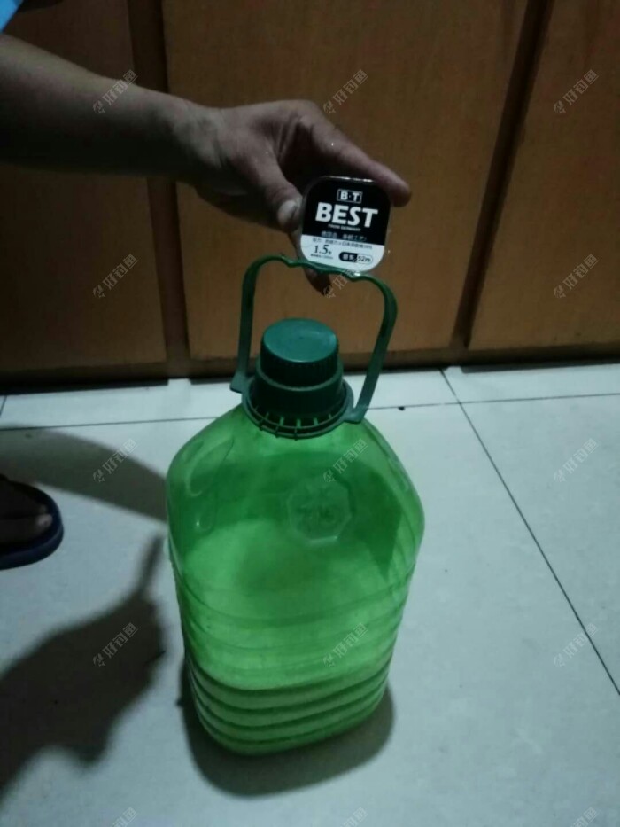 正好家里还有装大米的壶子,用称称了一下,五斤七两高高的。 一般钓鱼人简单说钓线的吃重问题,就是线号乘以四,这基本就是线的最大能拉起来的重量,咱们1.5的线,乘以四就是六,也就是说,这个鱼线能承受6斤的重量就不错了。