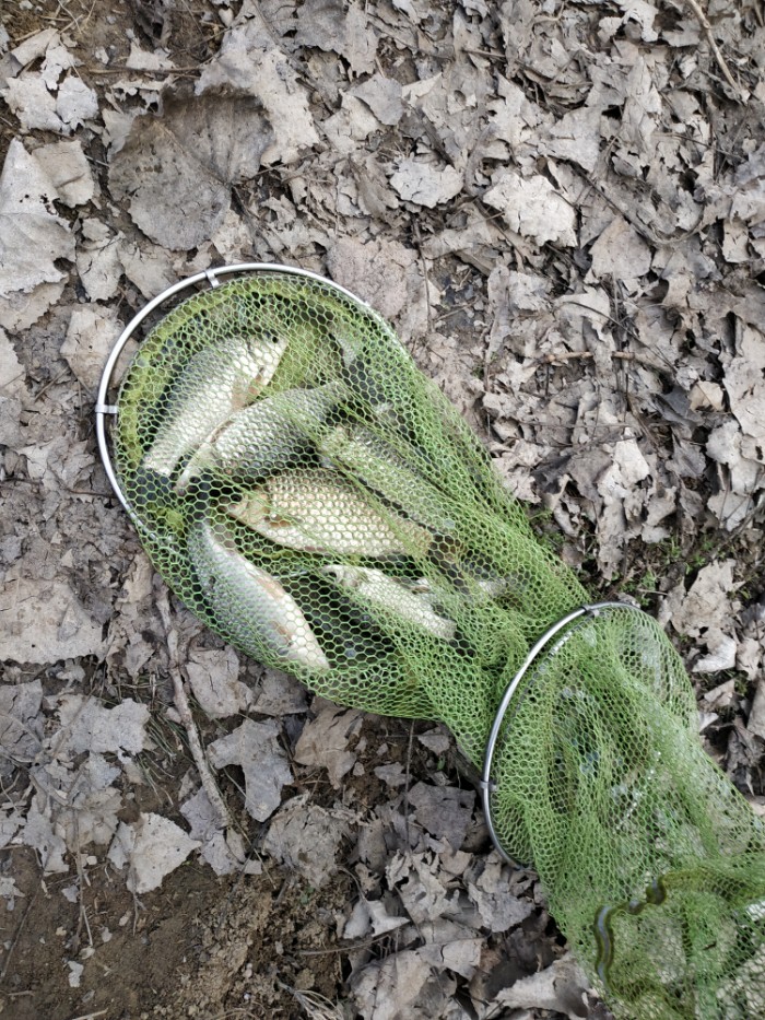 第一尾小板鲫来后,紧接着一连上来两三尾,有种小连竿的感觉。都没有来得及拍,可两点之后,曳然而止。等到四点也没有,只好收竿,看看鱼获。