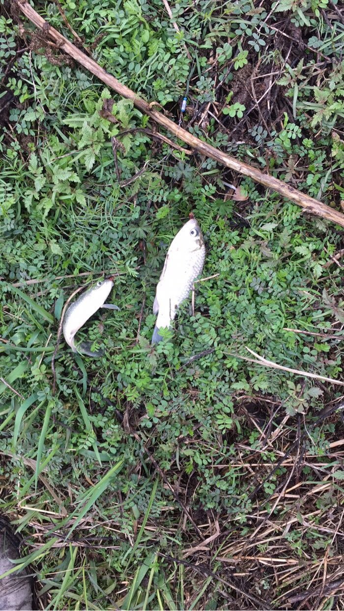 一共两个窝子。其中一个窝没几个鱼。不过上了一条一斤多鲫鱼。估计一斤半不止。没有抄网。直接断了子线。我心好疼