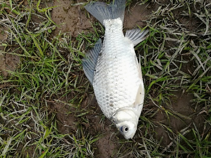 接下来又是等待,也只能这样了不停在抽竿。快12点时突然来了个顿口还黑漂了,兴奋的一抽竿又是弯弓,开始溜鱼模式!哇真爽又是一大鲫鱼上岸!