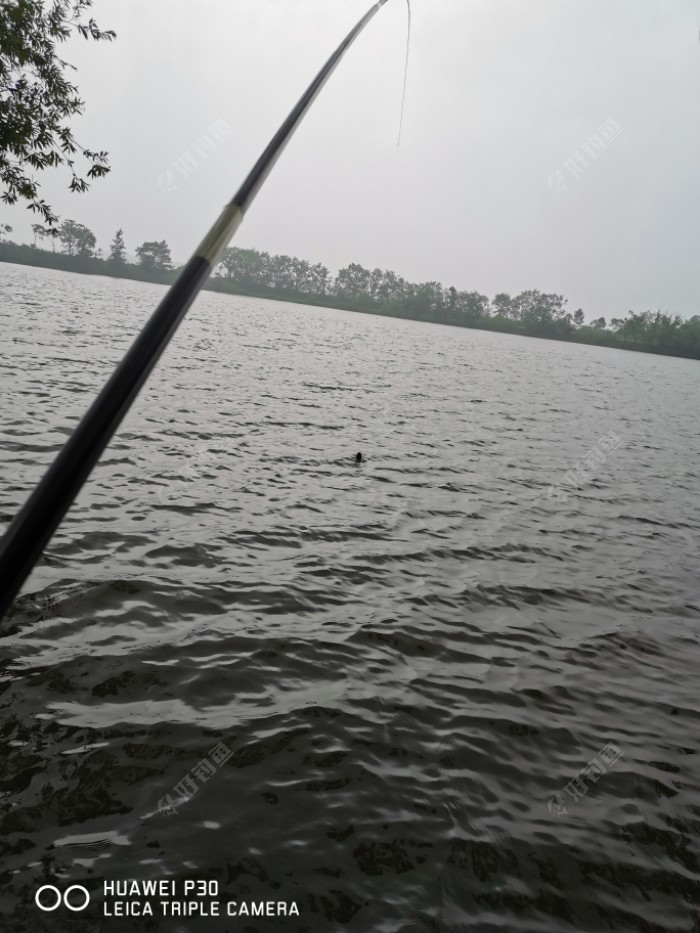 感觉风有点大,我的位置是树下面树枝对湖里面延展不好操作,就用7.2m杆加2m直通线作钓???,显示我超高技术活???。大概有半个多小时吧第一条