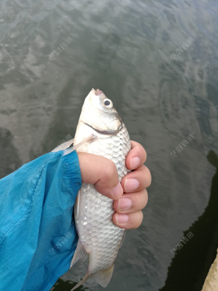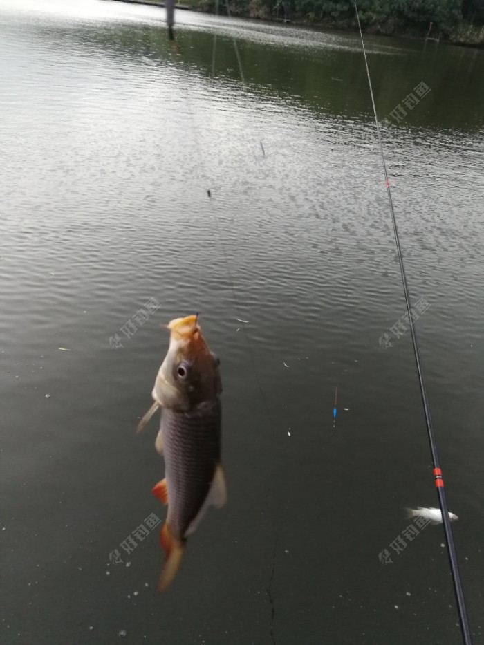 可惜的是,鱼还没露出水面,就脱钩了。我这边也有鱼口了,只见浮漂一个轻轻上顶,一尾小鲫。