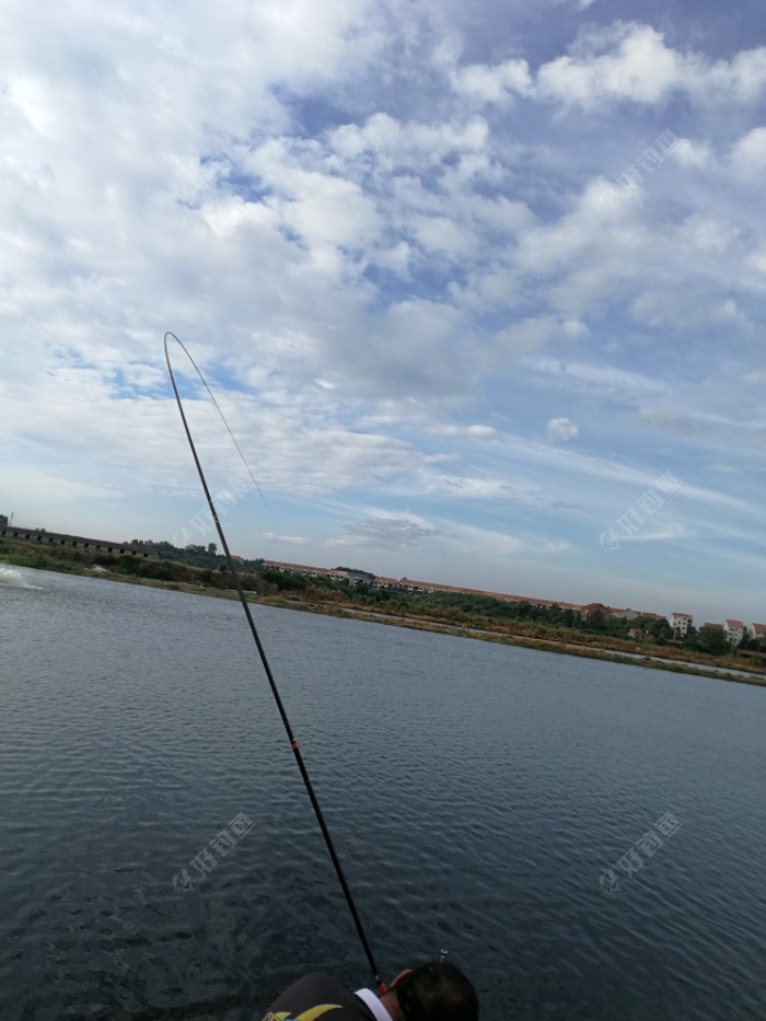 连续抛了十多竿,浮漂还是纹丝不动。过了差不多半小时,突然,朋友中鱼了!大鱼!