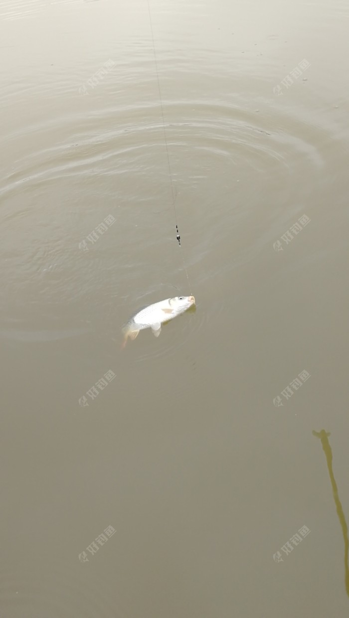 0.8+0.4线组,4号金袖,浮漂吃铅1.8克,调三钓三,打下自制小麦窝料,频率抽起来,几竿下去浮漂就有了动作,一个顿口,提竿中鱼