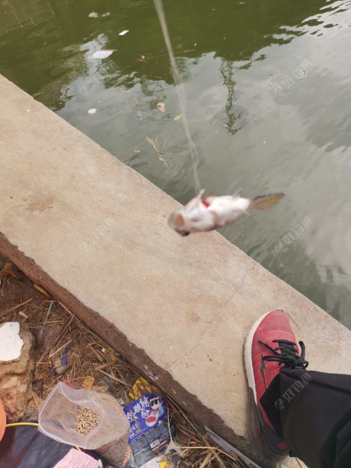 开竿第一条鱼是个小白鲢,底钓还正口感觉挺有意思的,特意照了照片。可能戴着眼镜看不清楚按错了,照片缺失。整场一共钓了三条小白鲢都给了旁边钓友,他说回家放附近鱼塘里。 抽了好多竿之后开始有口,不久中了一条大罗非。