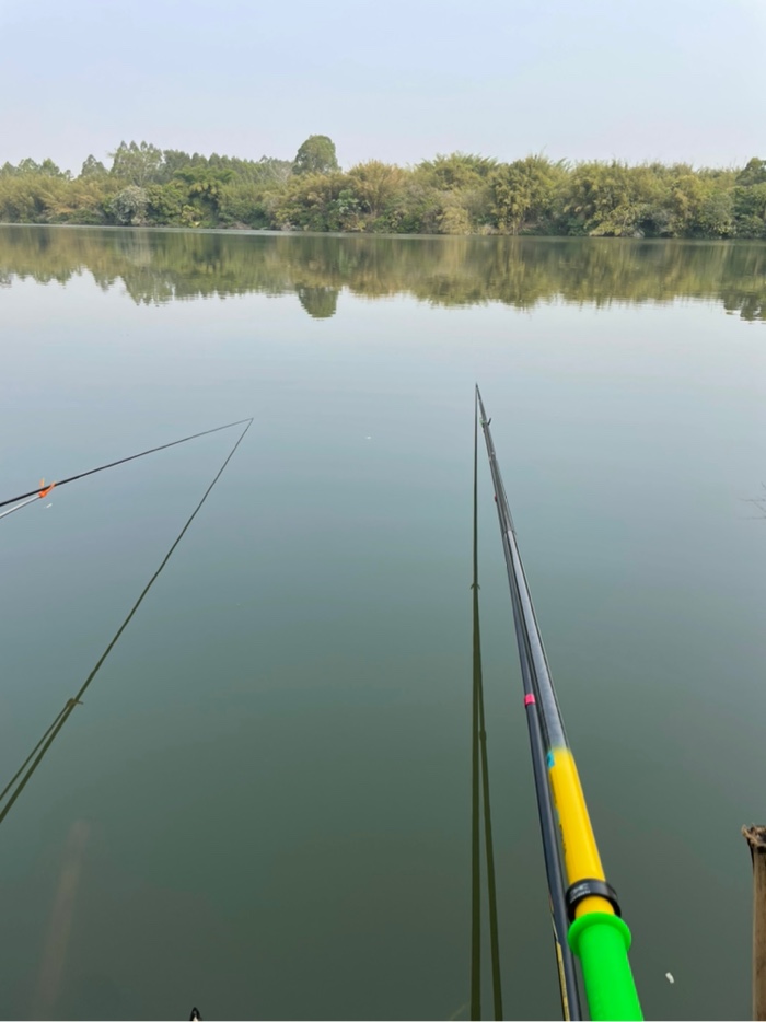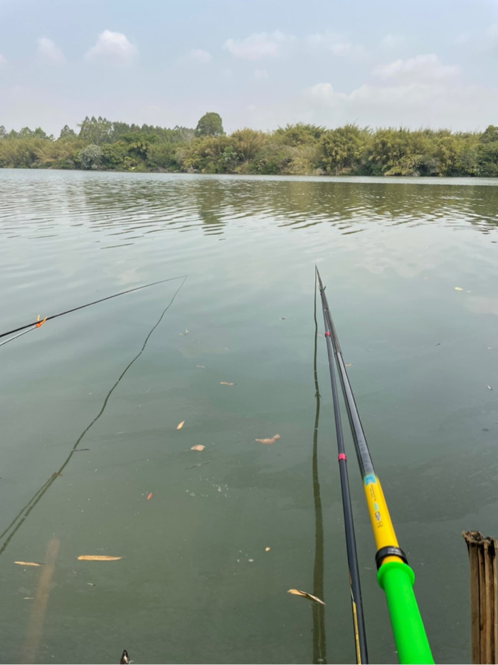 中午走水非常厉害,山陡站不住又是刮风,长竿真是不好操作,手酸又没口,起床早开始犯困了,挂上玉米和小颗粒,钓顿,大概是五六目,挂好失手绳子 找个竹林阴凉地方躺着,吹着微风午休眯一会儿,大概过了20分钟,回去看到漂好像接近葫芦位置了,也没在意,准备起竿换饵料,结果一提竿突然很大力道传来 慢慢提起来,感觉在动了,不像挂底,离水面还有两三米的时候突然开始发力了,使劲往外面冲,赶紧把竿弓起来往回牵,旁边的钓友看着吃惊, 都没看到我的漂有动作啊,我也是纳闷,先把鱼搞上来再说,折腾了几分钟,