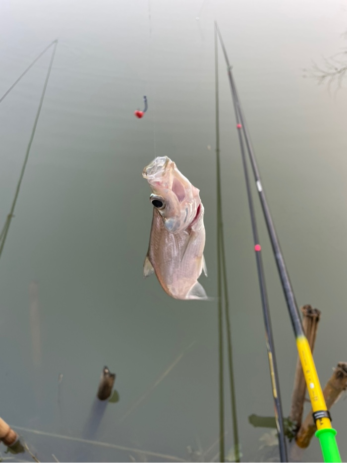 抽了1个多小时,没口, 上半夜听说狂口,同伴来的时候接近尾声了,只上了3条鱼 6点多天亮了