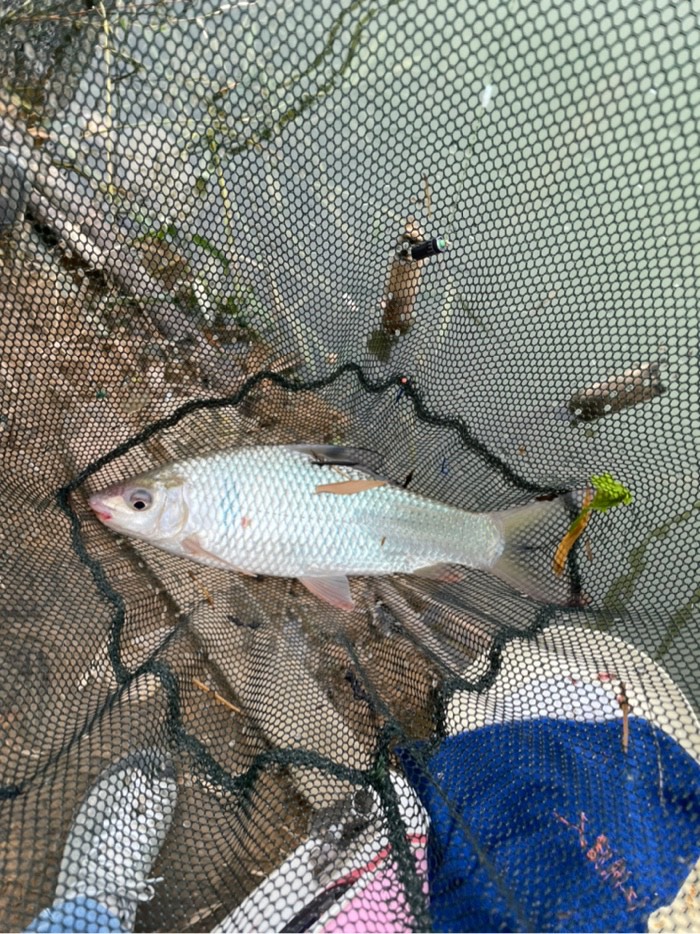 第一个正经鱼口就这样浪费了,可惜了,重新换0.5的鬼牙新关东,这个大小通杀 9点了,还是没风,越来越闷热了