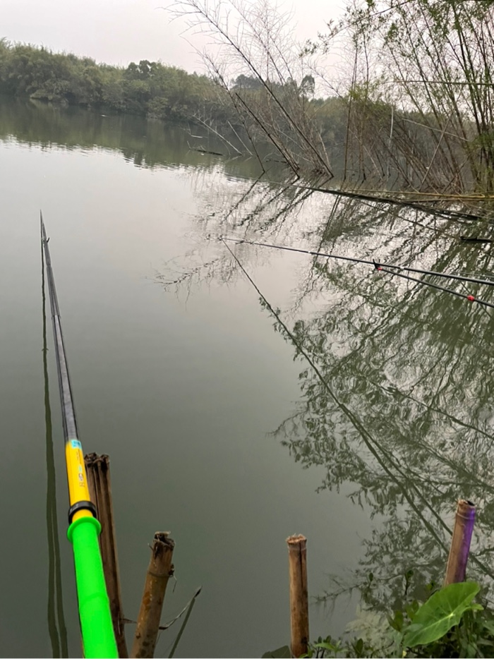 最近天气转暖了,很多人出动钓鱼了,一到周末很多通宵的,只能凌晨三四点出发抢位置去,同伴居然9多就过去了,我是走不开,只能凌晨三四点出发 由于睡不着,结果又提前1个小时出发了,4点半到达老位置,这么早居然坐满人了,加上同伴已经4个人了,我野挤挤刚好,马上拿出好久没用的头灯和夜光漂, 准备工作花了10多分钟,下竿了快5点了