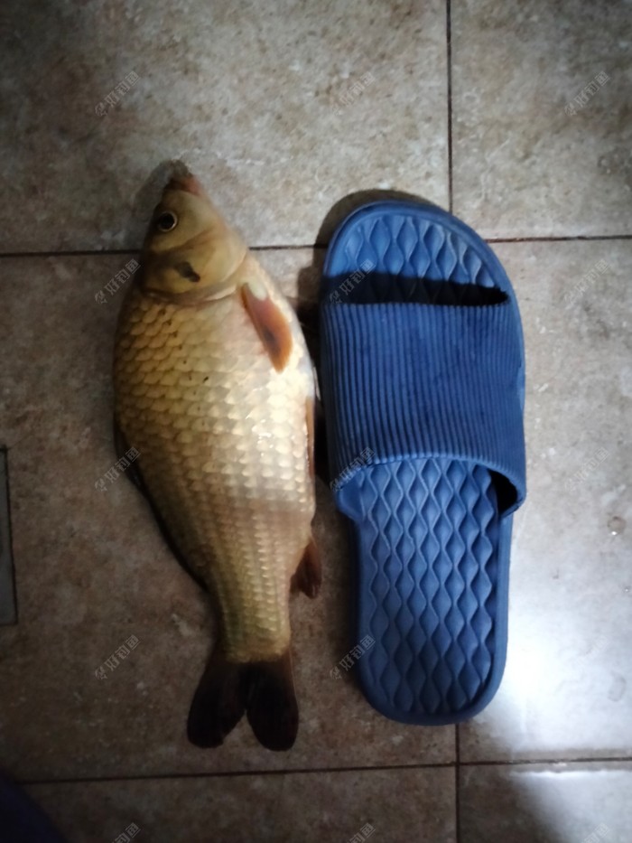 9月25日,当地预报大雨,看看墨迹天气,在早上10点以后大雨到来,许久没动杆,有些手痒。决定去附近河道小玩一下。7点到达钓点,找到菏叶空隙,长杆短线七星漂,带饵料下杆,约摸半小时后,星漂微弱点动,提竿发现有些份量,周折几下,出水一看,好大鲫鱼,误以为鲤鱼,未带抄网,硬提,挣脱跑掉。心里后悔啊! 没想到过一会儿,一条与跑掉的大鲫不相上下的鲫鱼又上钩,这次不敢鲁莽,请边上鱼友用他的抄网搞起!9:30收杆。斤半大鲫鱼和略小的鲫鱼发图如下。