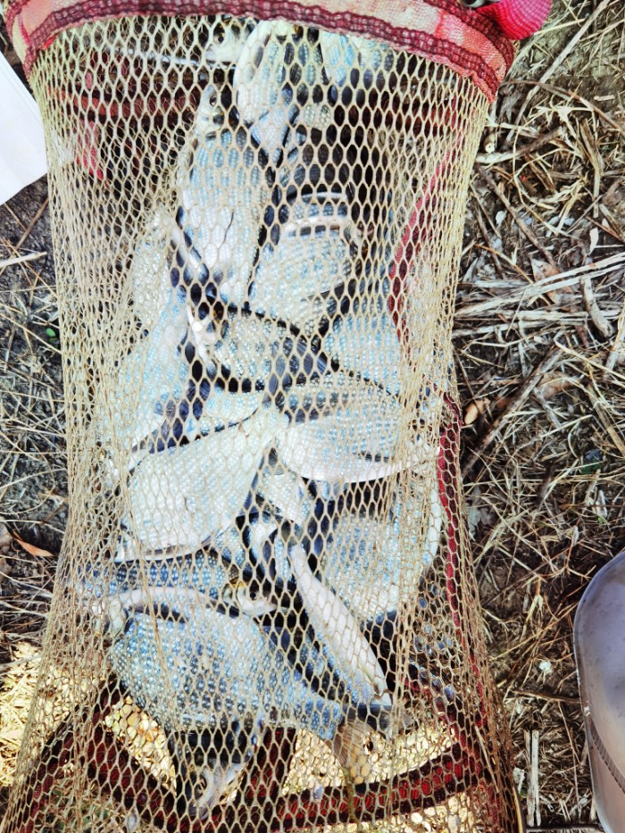 最终鱼获,鳊鱼二十加,最大的三两左右,小的一两出头,板鲫一尾,餐条若干,总重量在五斤左右,这是大叔虎年的第一次狂拉,相当漂亮,一扫之前几次的阴霾,这鳑鲏秘密基地够牛!大叔留了两条最大的鳊鱼和一条板鲫,其余就让超哥支配了! 作钓小结: 1、为什么会有这么多小鳊鱼?我估计看大叔帖子的钓友们肯定都有这疑问。其实是村里有人自作主张在大叔的钓点围网养鱼,违反了政策,结果网被人划了几个口子,所以今天除了板鲫,其余都是鱼塘跑出来的! 2、今天我和超哥狂拉时来了一个钓友,九点多来打窝,玩传统钓的,也是这个钓点的常客,随着天气的回暖,传统钓的优势会慢慢消失,台钓的优势会慢慢显现! 3、感觉现在钓鱼还是得起早,逮早口,温度一上来,鱼很容易上浮,没法钓!当然这也要根据不同钓点鱼的具体喜好而定!