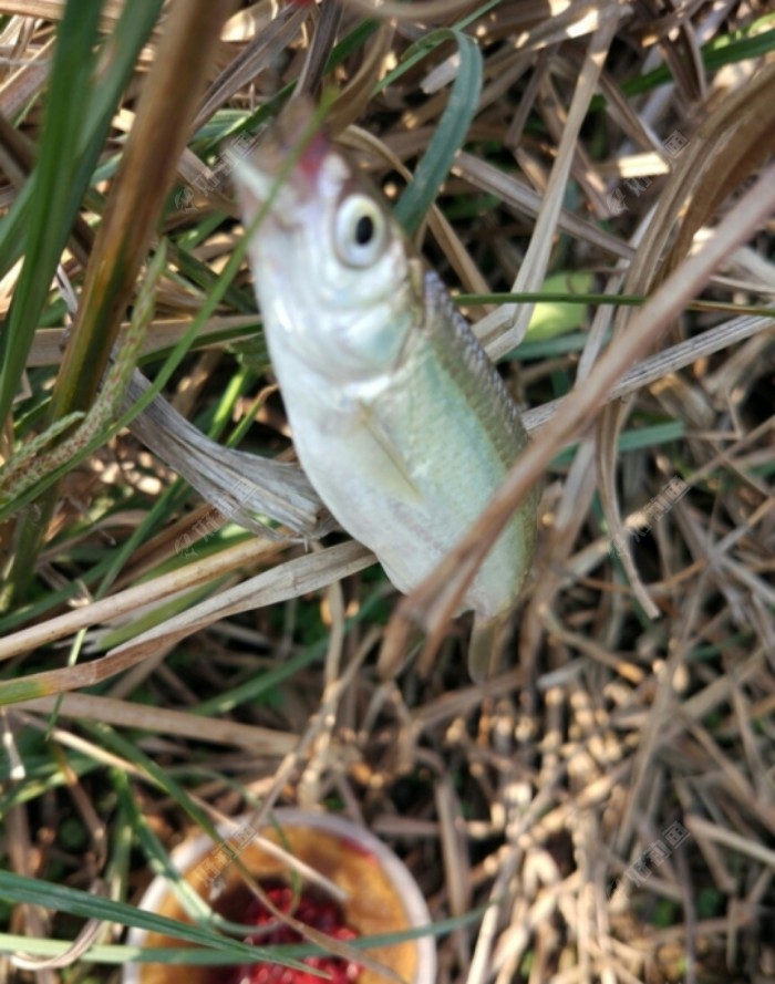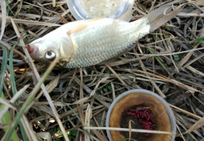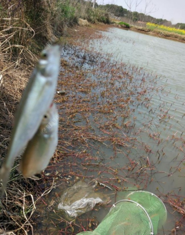 找了一个小野塘,塘边的水草不是很多,我先用长竿自制酒米打了个窝子,然后整理钓具。因为此塘白条较多,不敢用饵料,打算用红虫作钓,所以打窝就必不可少了。 钩子一下水,白条就来了。心里有准备,白条也不错。