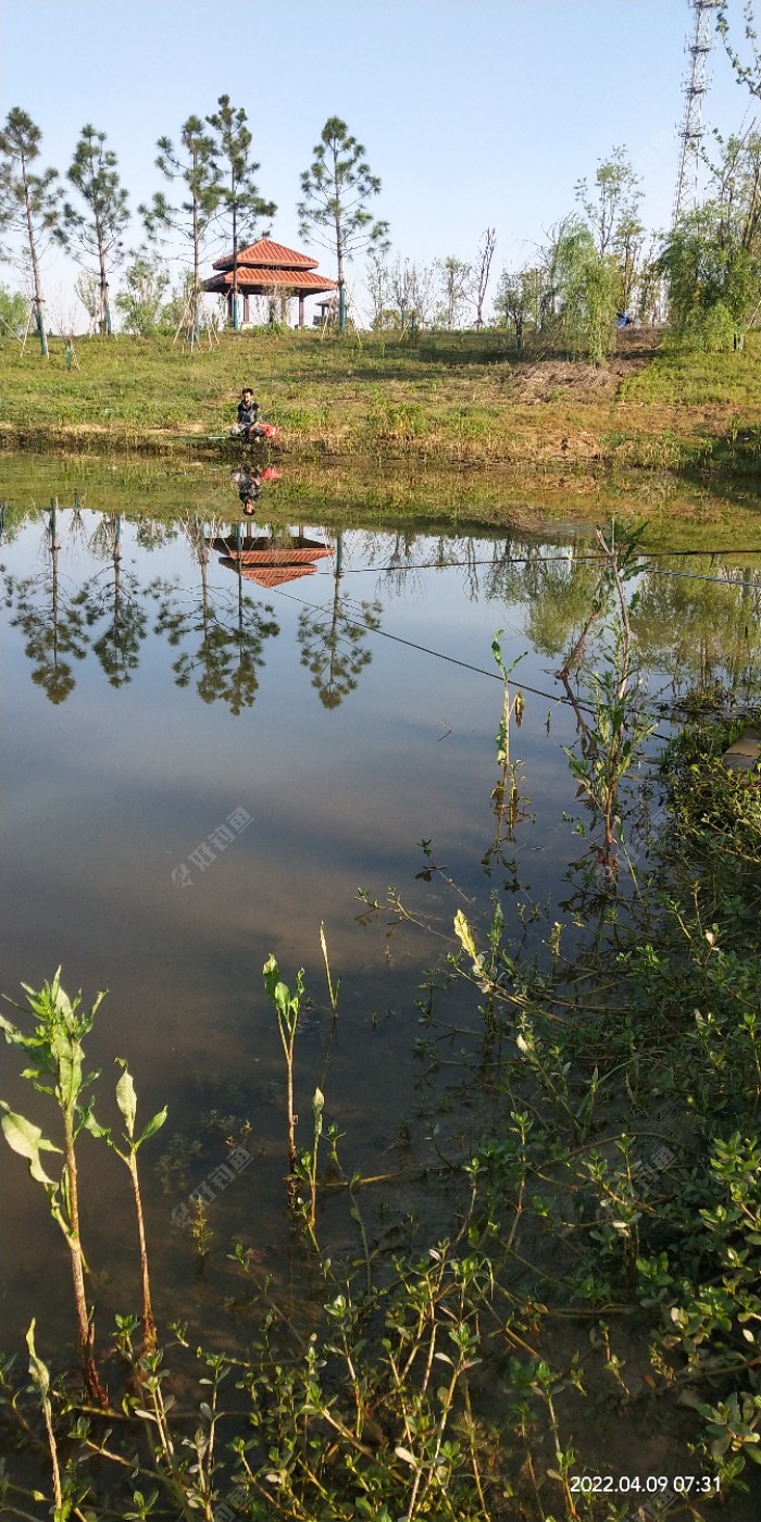 我选了一个有树荫的地方,因为这个时候的太阳太厉害了,晒的乌漆嘛黑不说,关键是还脱皮,上次都晒的我头上脱皮了。 右手边是谭总,右边斜对面是不认识的钓友,问了一下他说来了一会了,没口。看来今天够呛啊。