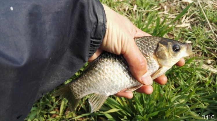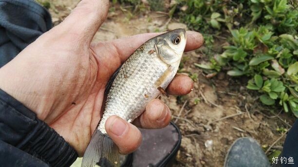 草前打窝,一排铺开七八个窝子,以窝找鱼。打完窝已是中午光景,穿着雨衣雨裤感觉燥热,想必鱼也会感觉不舒服。 半个多小时后上鱼,点子参差不齐,有板,更多是麻将,平均钓四五个才能留一条,留下来的大多也不过两半把一条。上鱼频率不高,一个窝子难得能逗上来两个,钓得非常不爽。 这般大的占绝大多数,随钓随放。