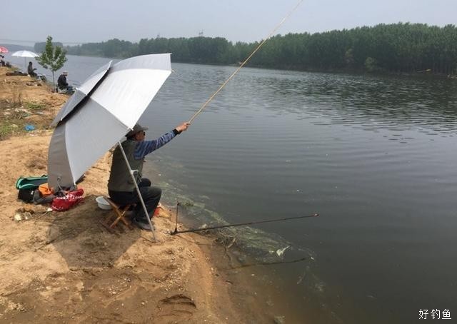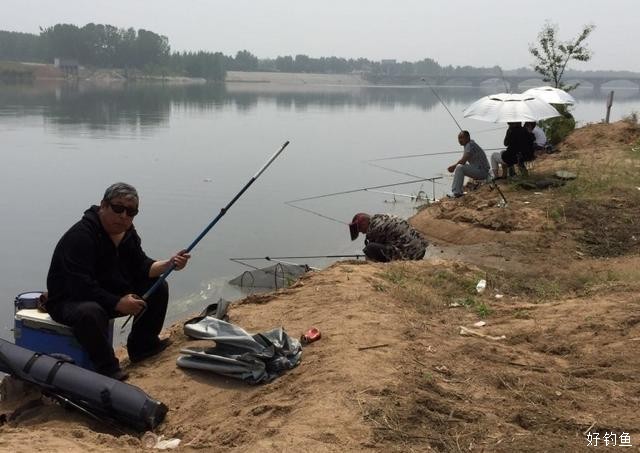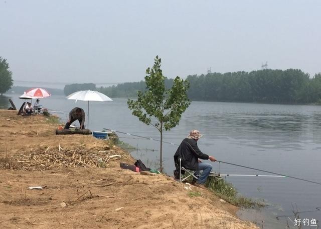 昨晚家弟来电话,相约去沂河钓鱼,我满口应承,准备好一应钓具早早入睡。 今天一大早,先到窗前观象,院落雾气氤氲,不由地担心起此天气是否影响到作钓,家弟满不在乎,说是太阳升高以后,雾气会自然消散的。栅栏上满架的蔷薇吐着芬芳,怒放的红色与黄色的花朵在晨光中格外醒目,也预示出今天会有好天气。 两人驱车穿城而去,街面上车辆稀少,行人也不多见,偶尔还能看到有自行车带着渔具的钓鱼人在匆匆赶路,彼心情即此心情,这是钓友的共性。在各地名胜人满为患的日子里,能端坐在雾气还在楼宇间慢慢升腾,偶尔露出胭脂色的旭日,过了沂河雾气更大了,不得不减速打开雾灯行驶。经过不少果园,路边的水果摊摆满了红樱桃、白兰瓜,奶油草莓……想起那名话:早起的鸟儿有虫吃。想必早起的渔人也会有好收获,顿时信心大增。 沿河北上数十公里,在一个小镇上用完简单的早餐。到了河边,只发现一位钓鱼人,他也是刚刚到达。水面静静的,白雾缭绕如云,都看不清楚对岸的景色。偶尔传来几声水鸟的鸣叫。 这里是沂河西岸,水质优良且为沙底,无挂钩之忧。早起种花生的村民告诉我们,这段河面被人承包,管理格外严格,电工们不敢来此作案,否则会受到皮肉之苦,但钓鱼人来去是是自由的。况且河滩比较宽阔,停车无忧,会吸引很多远道而来的钓鱼人。