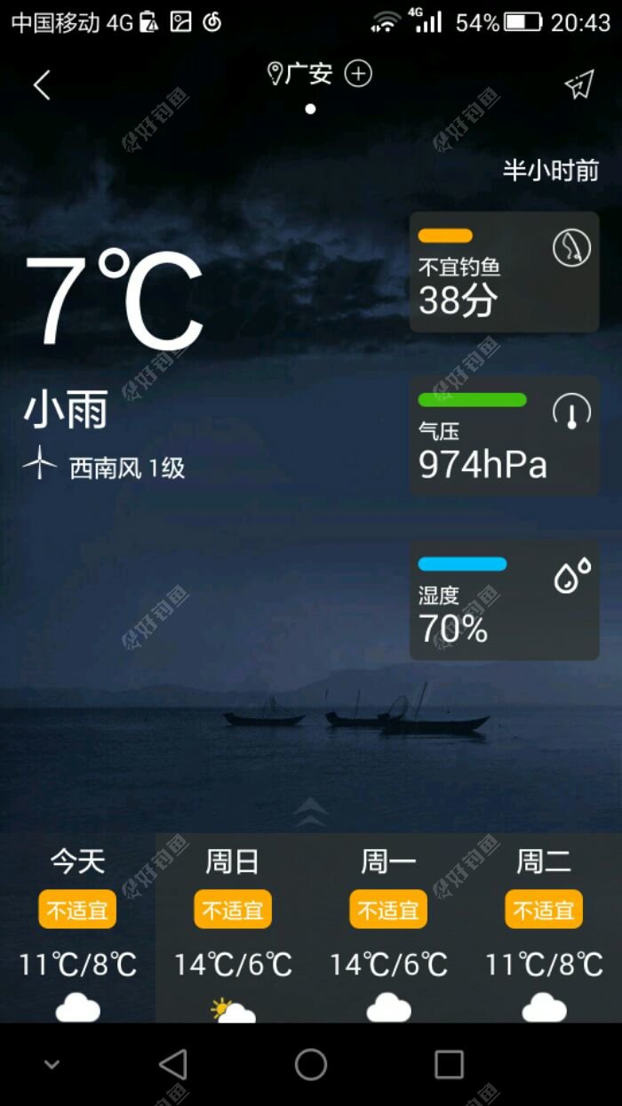 今天好钓魚天气显示小雨,不易钓鱼,但仍不能阻止我去解毒,到了钓场先打窝,冬季切记打小窝,如果窝打大了,魚儿就吃饱了,钓了一上午,还是空军,今天魚儿基本没口,赶紧在备甪窝里钓,30分钟钓了2条,到5点收...