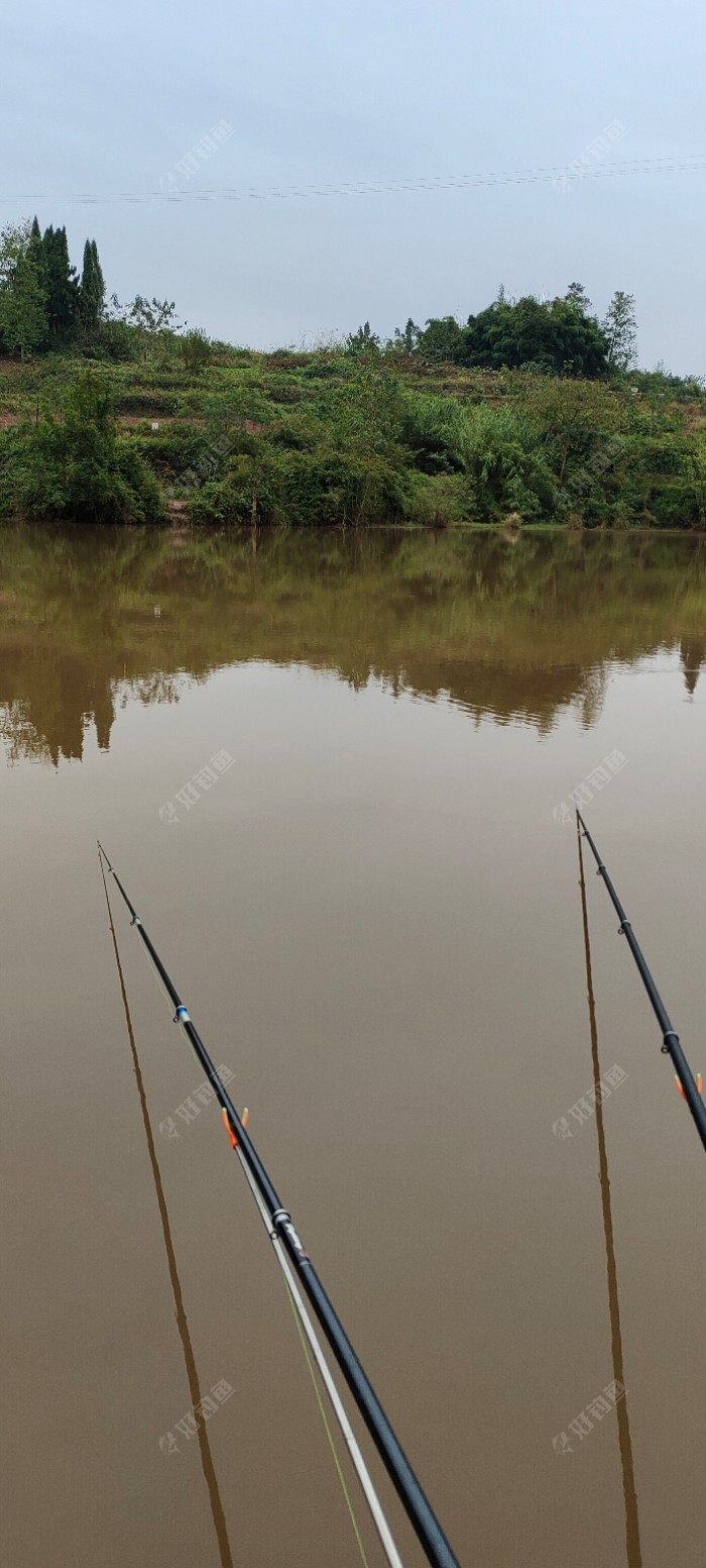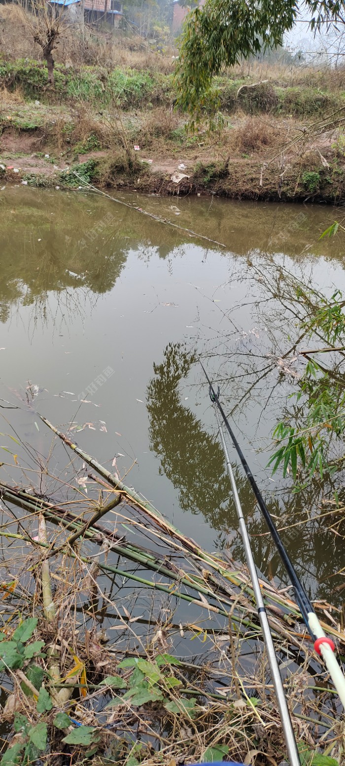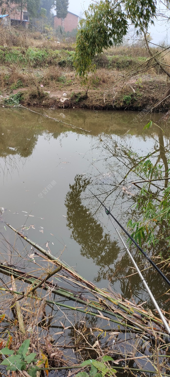 反正睡不着,六点半起床,雨还不小,不管那么多了还是准备出发,一根杆钓鲤鱼,一根杆钓鲫鱼,先选择水藻多的地方打窝,结果涨了水漂都离不起,换到小桥边回水湾,到12点就一条奶鲫,????不是空军。