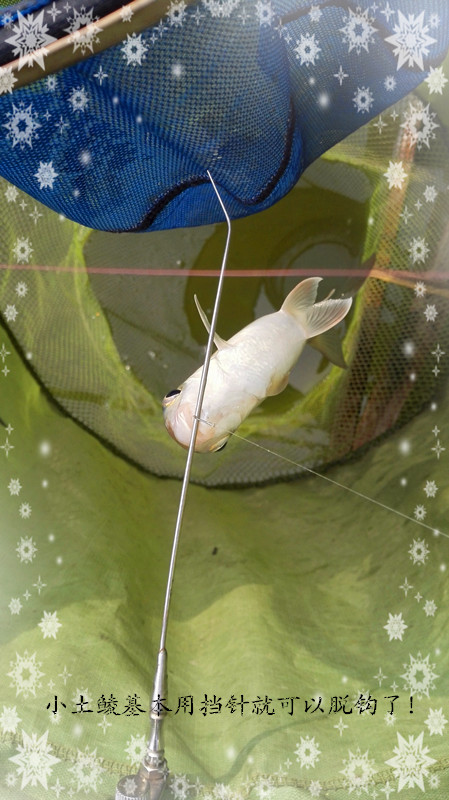 一切准备就绪,开始抽窝。一分钟二到三杆左右,抽了十来分钟,啥动静木有,不会被清塘了吧?,继续抽窝,半个小时左右,开始有动作,动作相当滴漂亮,顶漂就是不中鱼,神马情况?等下顿再起,有手感,拉出水面,原来是土鲮MM。