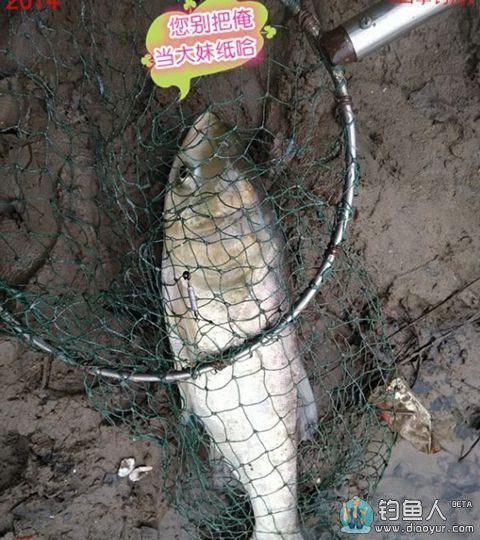 第 三天还是老地方,同样的饵料、装备,整个上午除了两三个小翘嘴来问候外基本上是晒竿。12点半左右,好在站岗两天的矶竿向河中心开始了一鞠躬、抬头、再鞠 躬,我靠,再不起竿便等何时?起竿的一瞬间便知道来头不小,中大家伙了。水下暗桩太多得小心应付,此物狡猾狡猾的一个劲地往暗桩处串,俺把竿死死地抱住硬 是没让它得呈,你来我往几个回合它便乖乖投降咯。