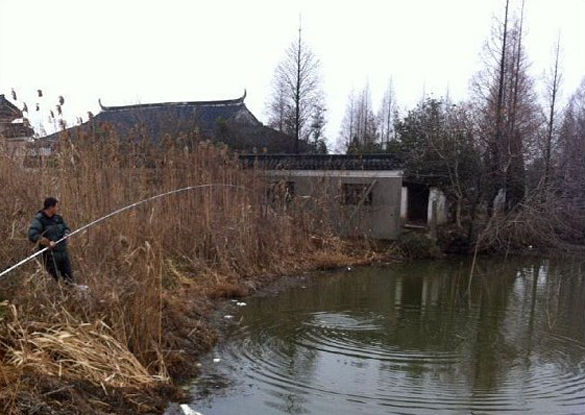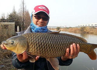 一个引逗后,水下的浮子再次被稳稳的顶出水面,惯例提竿飞鱼,鱼却纹丝不动。好像又中鲤鱼”嘴里一边叫着,一边思考着鱼发力后的对策。鱼依然丝毫不 动,只是被线牵着缓缓的在水底移动却不露面。此时刚刚想的对策竟然全无了用武之地,而且隐隐的感觉到这条鱼的个体似乎比先前的那条鲤鱼更大一些。鱼依然在 水下缓缓的被线牵着滑动着,就像钩上挂了根烂木头,但俺确定那是一条鱼。左右环视溜鱼的范围,突然发现在竹堆中有条出口通像河道弯口的宽阔水域。大鲤是狡 猾的,但它却忽略了鱼是无法抗拒人力的事实。经过几个回合的较量,它在70公分的水中明显已经开始体力不支。被鱼线牵着,几次都无法成功回到插竹密集区。 只要俺稍一用力,它便就被带出水面呛水。眼看使用抄网的一刻就要来到了,俺心中开始激动起来。